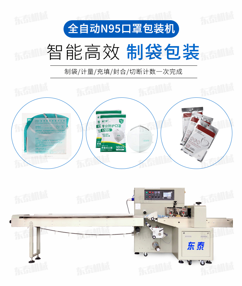 口罩包裝機可用于餅干、月餅、蛋黃派、米餅、雪糕、方便面、巧克力等塊狀產品的包裝,特別適合于小批量單一產品的包裝。