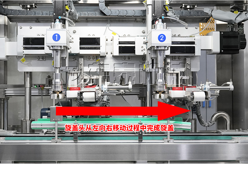 4、旋蓋(瓶子不停頓,抓具一邊跟著瓶子走,一邊進(jìn)行旋蓋動作)