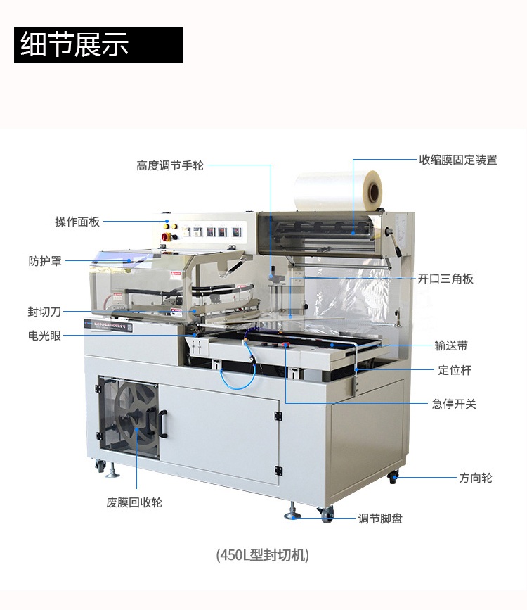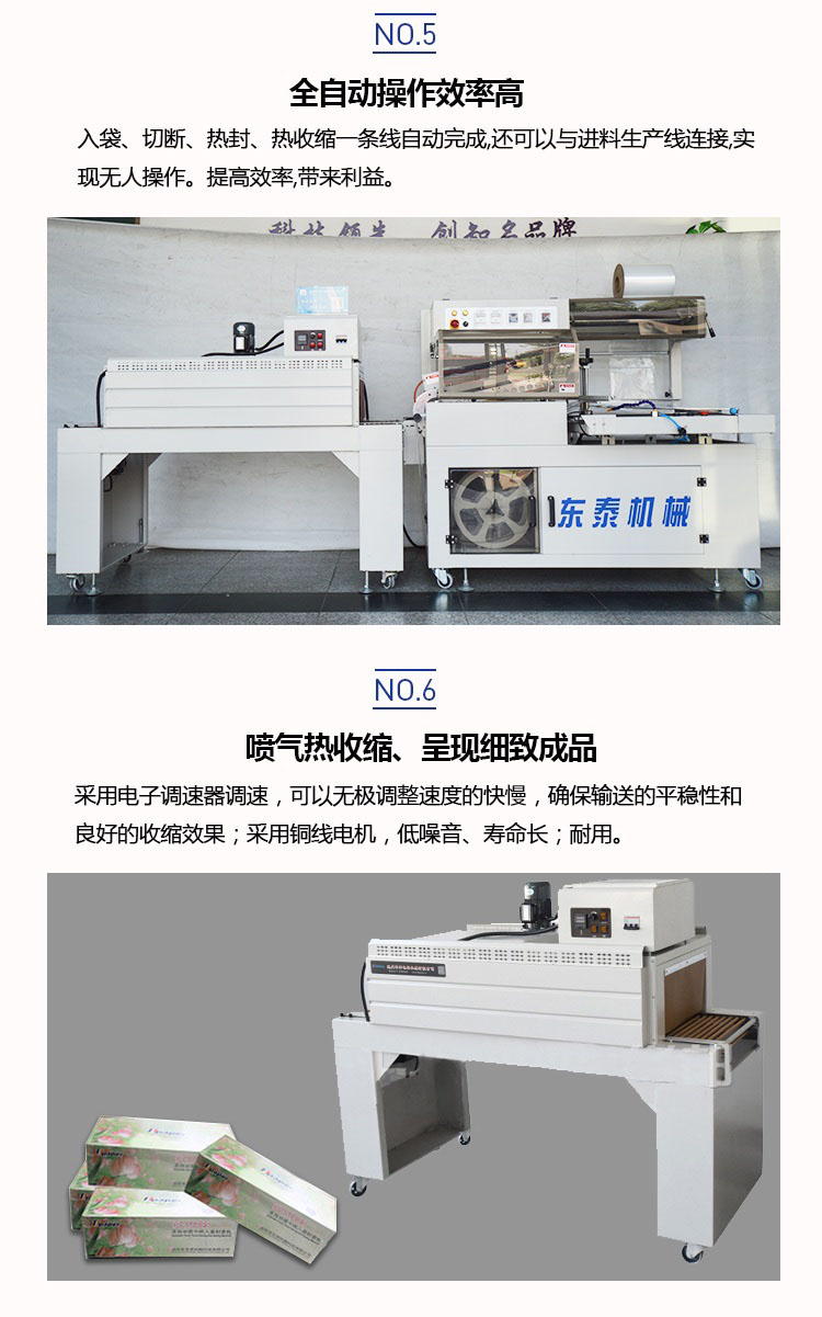 全自動套膜收縮機是由全自動450L封切機和熱收縮機組成,入袋、切斷、熱封、熱收縮一條線自動完成,還可以與進料生產線連接,實現(xiàn)無人操作。提高效率,帶來利益。全自動化封切收割,適用于各種物品的套膜及收縮,生產效率高,品質有保證。