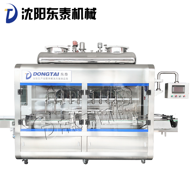 3、 該設(shè)備在設(shè)計(jì)上大大縮短了下料斗到灌裝頭的灌裝距離,克服了含油量大的物料(如:含芝麻粒的辣椒油)在灌裝過(guò)程中出現(xiàn)的有些瓶油多,有些瓶醬多的灌裝誤差大的缺點(diǎn)。