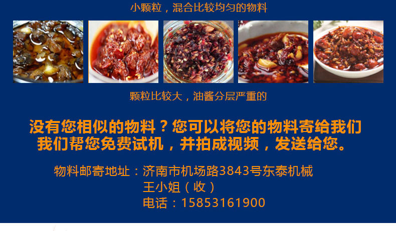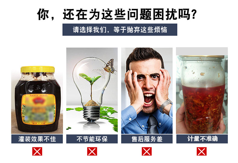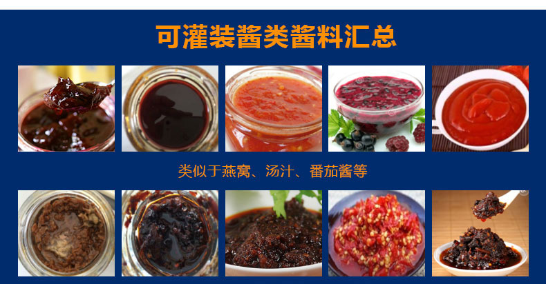 適用范圍:小型辣椒醬灌裝機主要適用于那些含顆粒的顆粒漿狀流體、半流體、膏體、醬狀類的物料灌裝,各種勻質(zhì)醬料、火鍋底料、老干媽辣椒醬、干煸牛肉醬、泡椒、牛肉粒醬、香菇丁醬、八寶菜、蘿卜丁、含干煸臘肉丁、辣子雞丁、油炸花生等大顆粒、含油量少等干煸辣椒醬的灌裝。