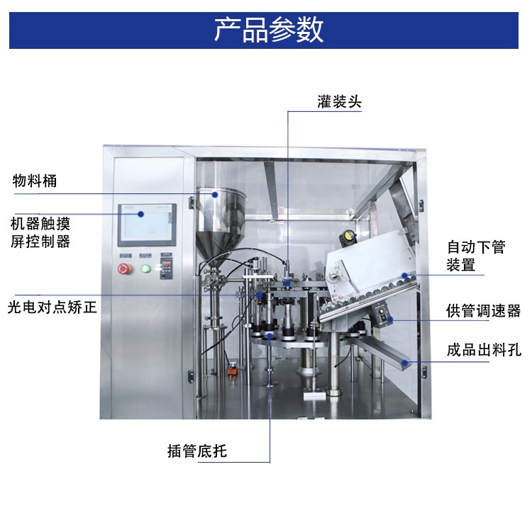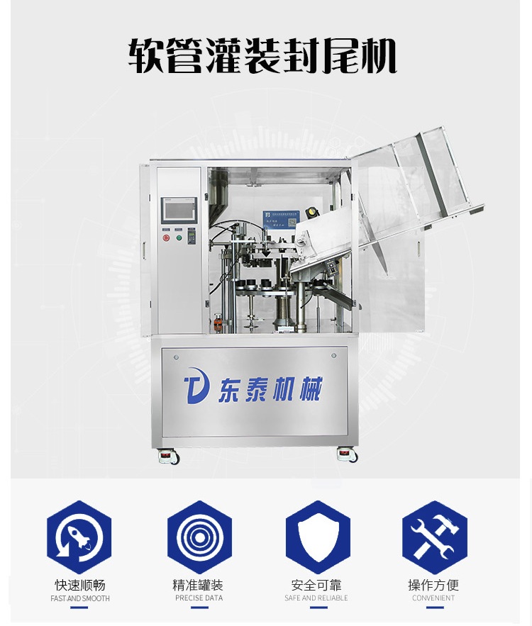 A、RGNF-30適用于醫(yī)藥、食品、化妝品、日用化工用品等行業(yè)的塑管、鋁塑復(fù)合管灌裝封尾需要?蓪⒏鞣N 糊狀、膏狀、粘度流體等物料順利準(zhǔn)確地注入軟管中,并完成管內(nèi)熱風(fēng)加熱、封尾和打批號、生產(chǎn)日期等。